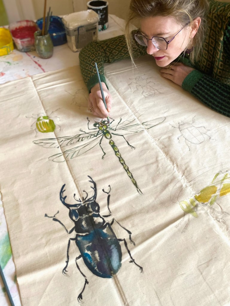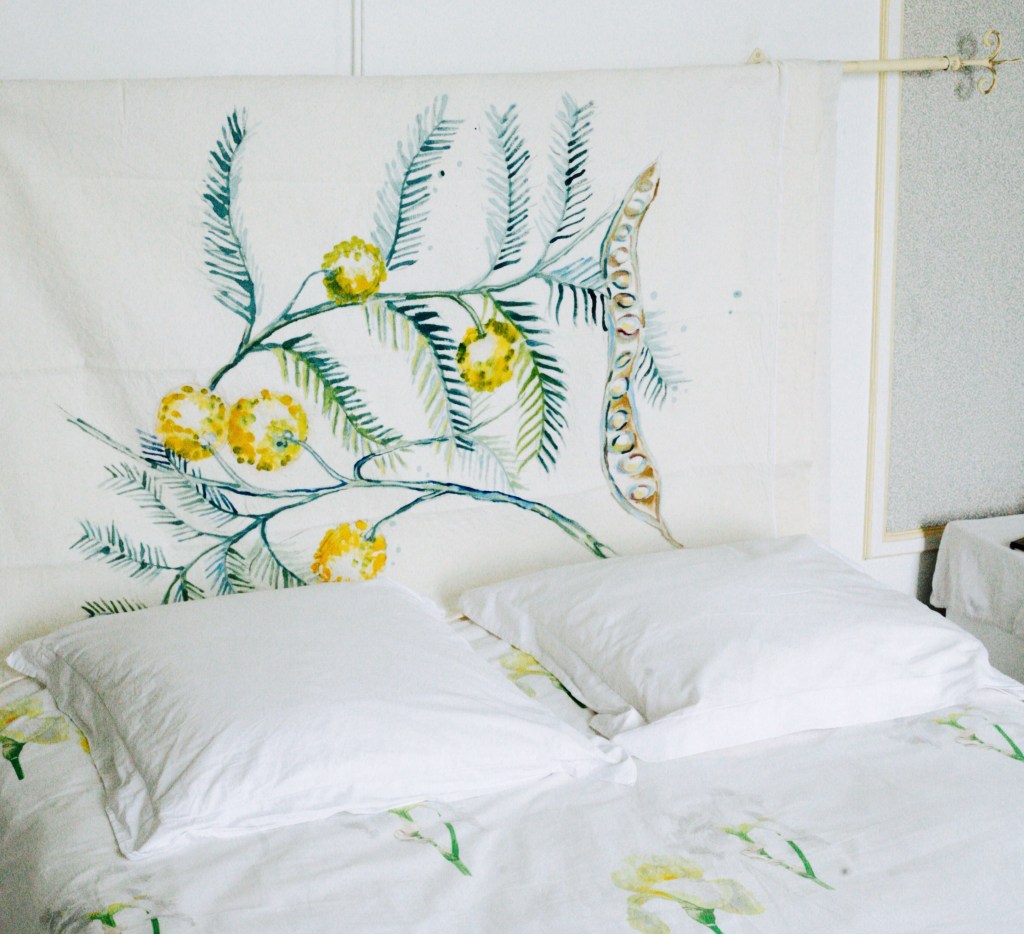 Toutes les illustrations sont peintes à la main sur des draps anciens en métis (lin/coton).
