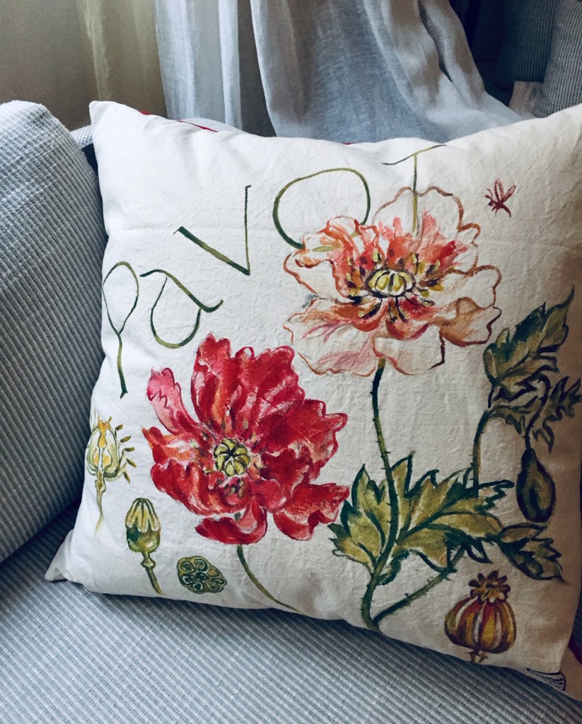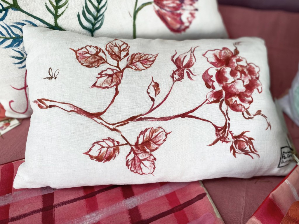 coussin pavot 60x60cmréalisation de galettes de chaise dans une gamme rouge pour une commande, modèles « albizia » et « pavots »Coussins cerises « Belle de Rocmont » et « Bigarreau » 60×60, dos en lin naturelcoussins « grenade » 40x60cm et « pamplemousse rose » 60x60cmcoussin 30x50cm « rose pivoine »coussin « aneth » 60x60cm et « mimosa » 40x60cm, dos contrastés en coton unitoiles de transat modèles « marguerite » et « poivrier » en toile microfibre – réalisation sur commandegrande tenture murale « Paliurus SpinChristi » (épine du Christ) 100x180cmTenture « pivoine » 40x70cm, peinture sur lin doublée d’un coton sergé fuchiacoussin 30x50cm « rose monochrome »toile de transat illustrées de « pavot » et « hortensia » – réalisation sur commandeTenture « lotus » 40x70cm, peinture à la main sur lin, doublé d’un coton sergé vert céladontête de lit personnalisable, illustrée sur du linge ancien et aux dimensions souhaitées – motif « mimosa »coussin « avocat » 50×50, peinture sur lin, dos vert céladontenture murale décorative 70x200cm de type kakémono, motif « linaire » façon herbier géantcoussin « mimosa » 50x70cm en drap métis, dos jaune curry coussin 30x50cm « bergamote »tenture murale décorative de type kakémono, motif « pissenlit »illustration d’une tenture sur le thème des INSECTES