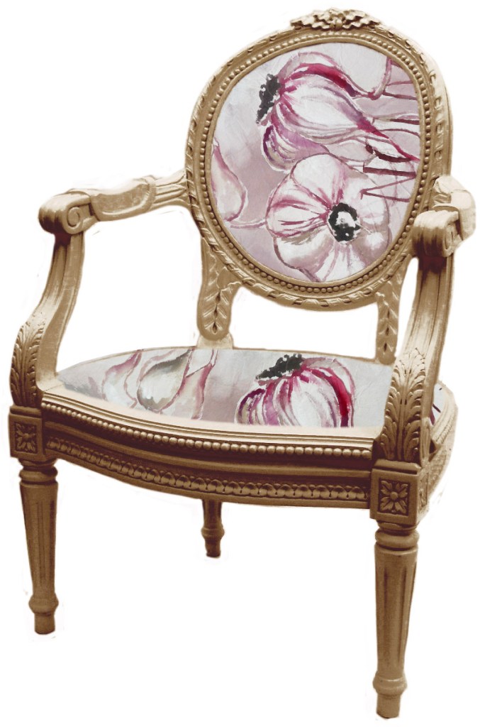 Et pourquoi pas une toile sortie de son contexte « cuisine » pour revêtir et « dynamiter » un fauteuil de facture classique ?