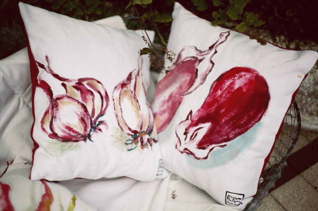 fauteuil cabriolet recouvert d’une toile en drap métis épais, d’après le motif « ail nouveau »coussin 60x60cm illustrant la thématique des CUCURBITACES – modèle « courge turban » élaboration d’un panneau à illustration très ébauchée sur un drap ancien au tissage dense en vue d’un dos de fauteuilpersonnalisation d’un fauteuil de style Louis XIV par de grand motifs placés évoquant fruits et recettes…des coussins de lecture (format oreiller 60x60cm) qui ne manquent pas de piquant coussin illustré d’une cerise griotte, au glacis savoureux… dos en toile bayadèretentures culinaires format torchon « fèves » et « conserve tomate »tenture culinaire « soupe betterave »tablier « cerises »Tentures culinaires format torchon « thé rouge » et « sangria »coussins 30x40cm « ail » et « aubergines »Tablier « potiron »Coussins potagers créés à l’occasion d’une exposition gourmande à la GALERIE des CREATEURS à Touques (14)Tenture format torchon « poires vue dessus »tablier confectionné dans un drap ancien, agrémenté d’une bordure en toile de jute, et illustré d’un motif poiretenture culinaire « citrons verts »coussins série potagère « piment » et « potiron »
