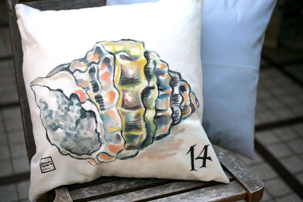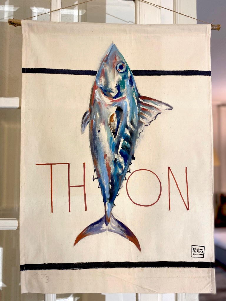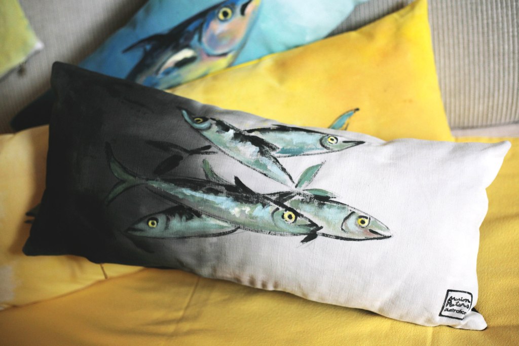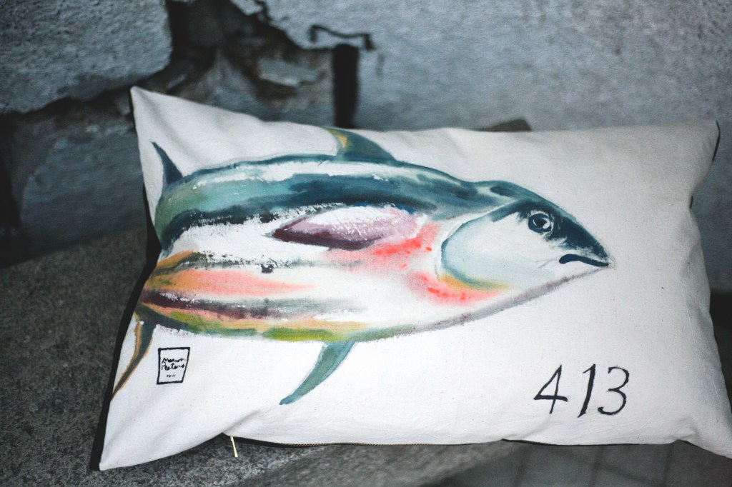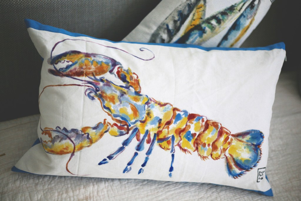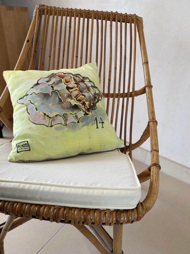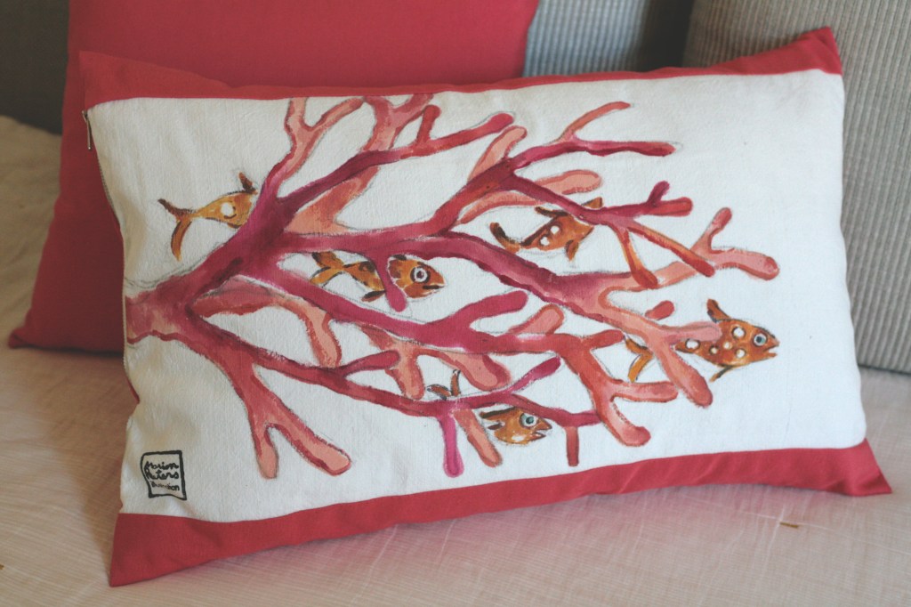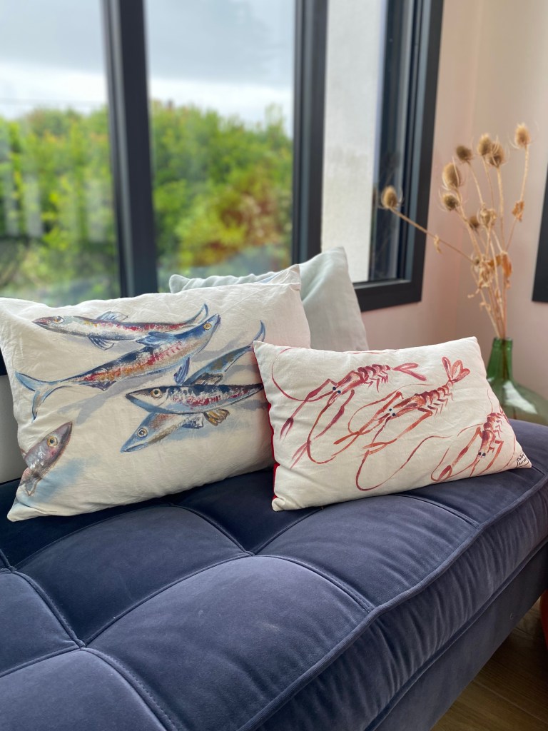 Toutes ces créations sont peintes à la main sur des draps ancien en métis et les coussins déhoussables.