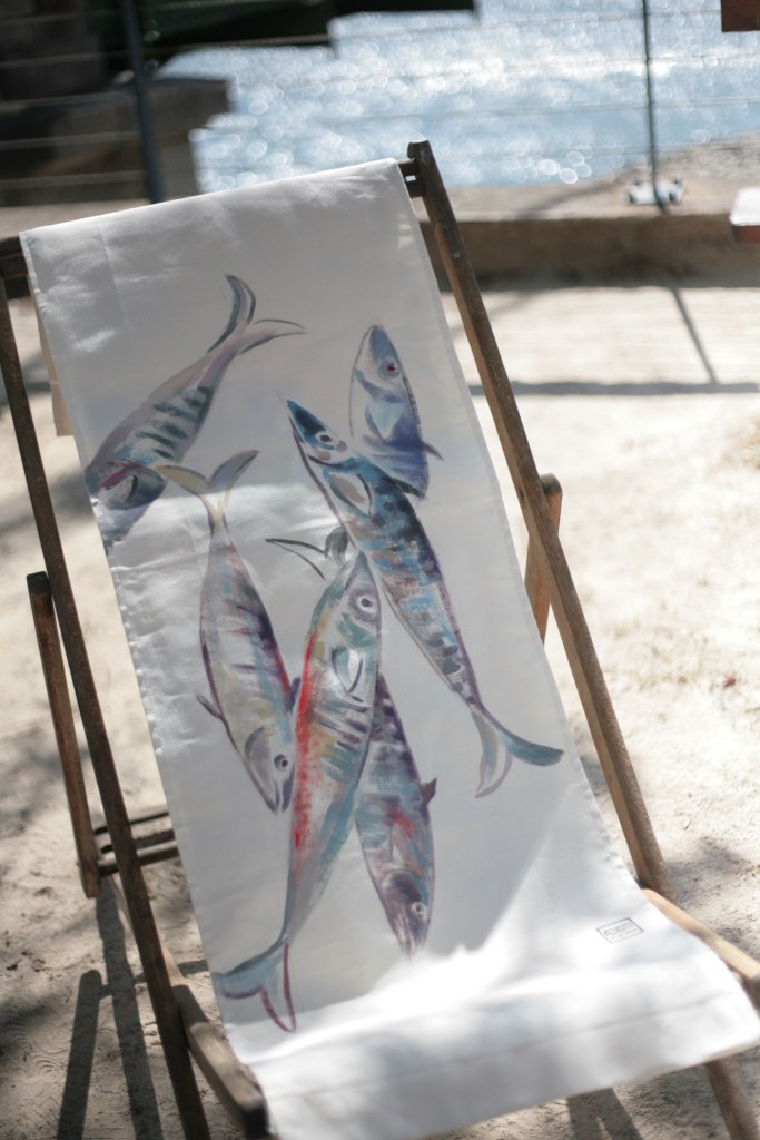 toile de transat « maquereaux » 41x150cm adaptée aux doubles barres – toile déperlante polyester