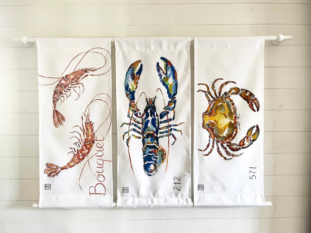 Une gamme tout en douceur sortie de planches encyclopédiques ou de gravures anciennes, recolorées, numérotées pour certaines et signées.