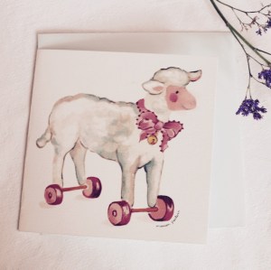 #illustrationmarionpeeters #cartesaquarelle#naissance#jouetsanciens#agneau