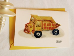 #illustrationmarionpeeters #cartesaquarelle#naissance#jouetsvintage#camionbenne