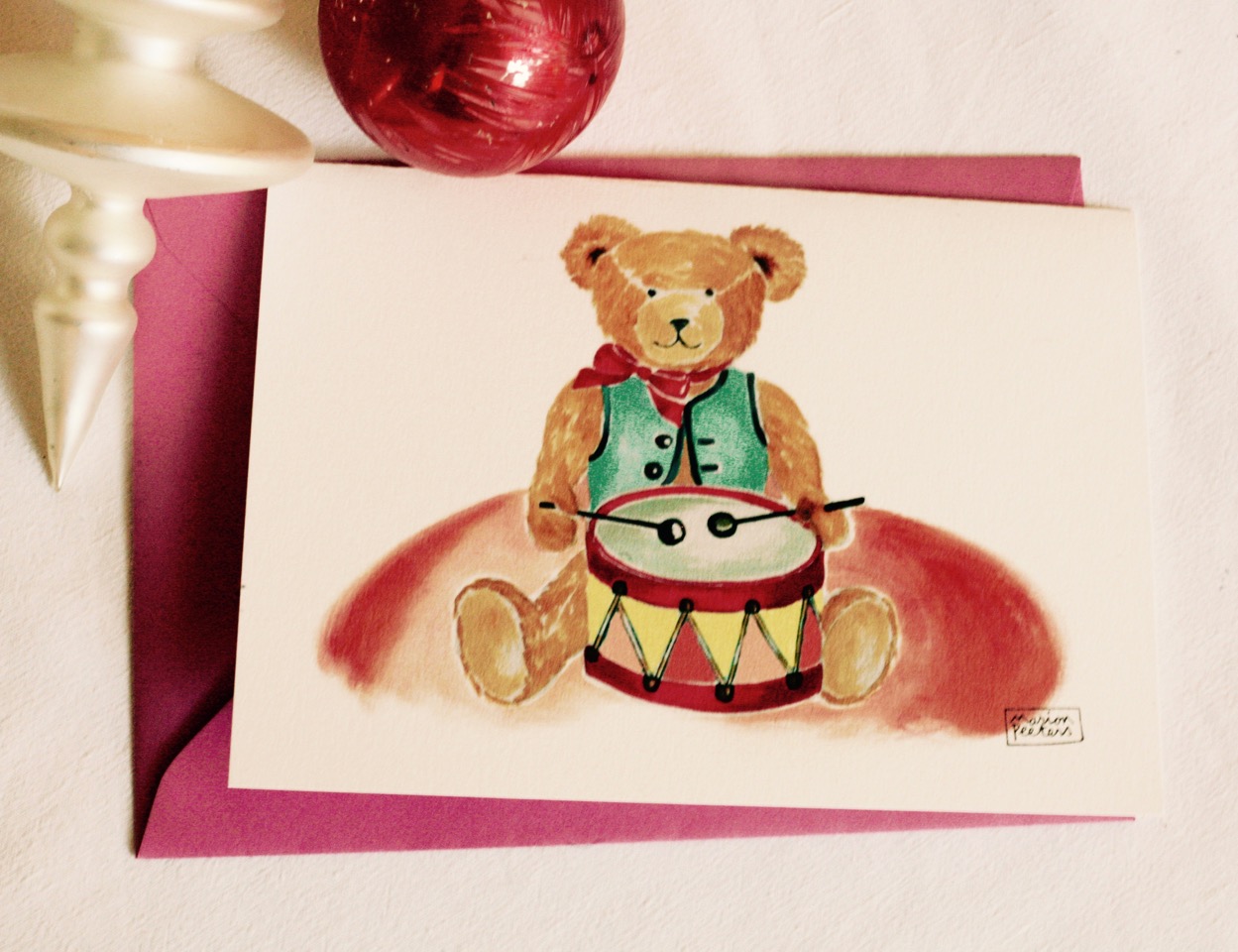 #illustrationmarionpeeters #cartesaquarelle#naissance#jouetsvintage#ourstambour